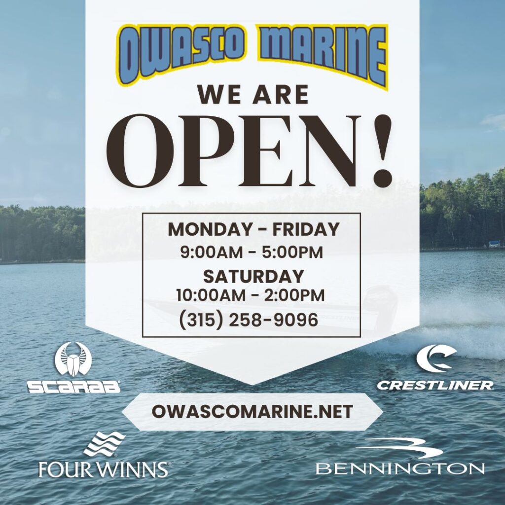 Well, the 2024 winter proved to be the toughest one we’ve had in recent memory. The February Boat Show suffered from truly impassable conditions, but sales of new and preowned boats were pleasantly brisk. Nationwide, boat sales are still a little sluggish, but for us at Owasco Marine the waters are calm and the breeze is at our backs. Our inventory has stabilized at a good level, boat prices have actually declined, Maufacturer’s incentives are being offered and interest rates have fallen. Add this all up, and it makes this a great time to consider that new or preowned boat. Our indoor showroom is currently being set up with new Benningtons, Crestliner’s, Four Winns, and of course now Scarab, all with Incentive $ and a motivated seller (Me). So come to the Marina and see the new layouts, colors and options in our showroom. Give us a call and we’ll set up a time to make you part of the Owasco Marine family.